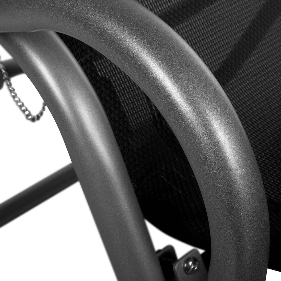 Das Gestell wird aus Stahl gefertigt und sorgt damit fĂŒr stabilen Halt beim Sitzen. Farblich ist dieses in Platin gehalten. FĂŒr die Bespannung der SitzflĂ€che wird hochwertiges Textilene verwendet. Es zeichnet sich durch eine hohe Robustheit gegenĂŒber Hitze und Frost aus und ist leicht zu reinigen. Die Farbgestaltung der SitzflĂ€che in Carbon ist ĂŒberaus ansprechend.