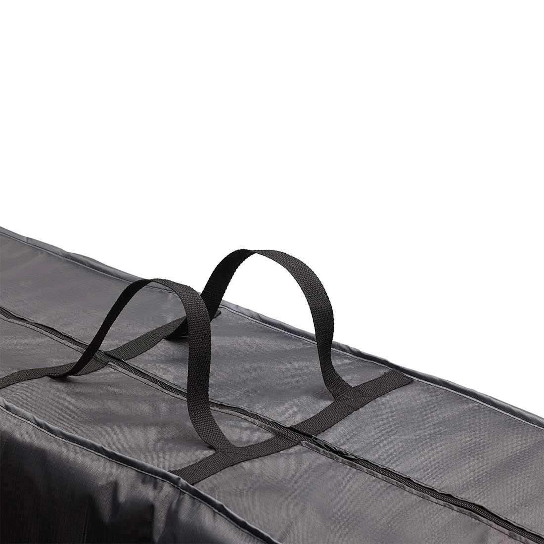 Um einen komfortablen Zugang zum Inhalt der Tragetasche zu haben, verfügt diese über einen Reißverschluss. Abgerundet wird die Tragetasche durch verstärkte Griffe. Unser Tipp: Am besten bewahren Sie die Tasche samt Inhalt im Innenbereich auf und öffnen den Reißverschluss von Zeit zu Zeit, um die Auflagen und Kissen auszulüften.