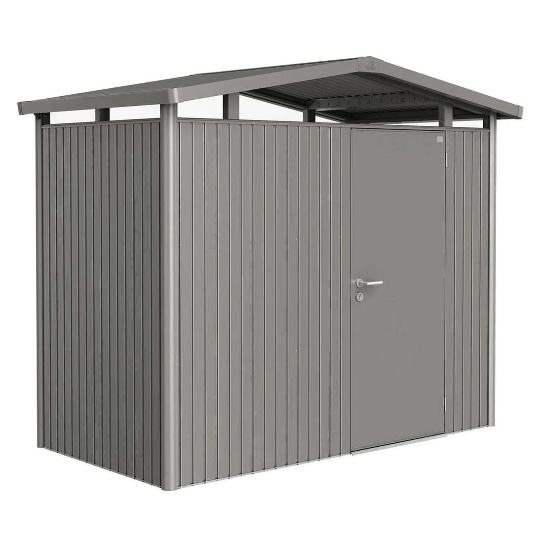 Die Serie Panorama von Biohort richtet sich an Personen, die sich ein luxuriöses Gerätehaus in höchster Qualität und Funktionalität gönnen möchten. Im Gegensatz zu günstigeren Produkten verfügt das Biohort Gerätehaus über eine doppelte Stahl-Blechstärke. Zudem wartet es mit einem umlaufenden Acrylglas-Oberlicht unter dem Satteldach auf.
