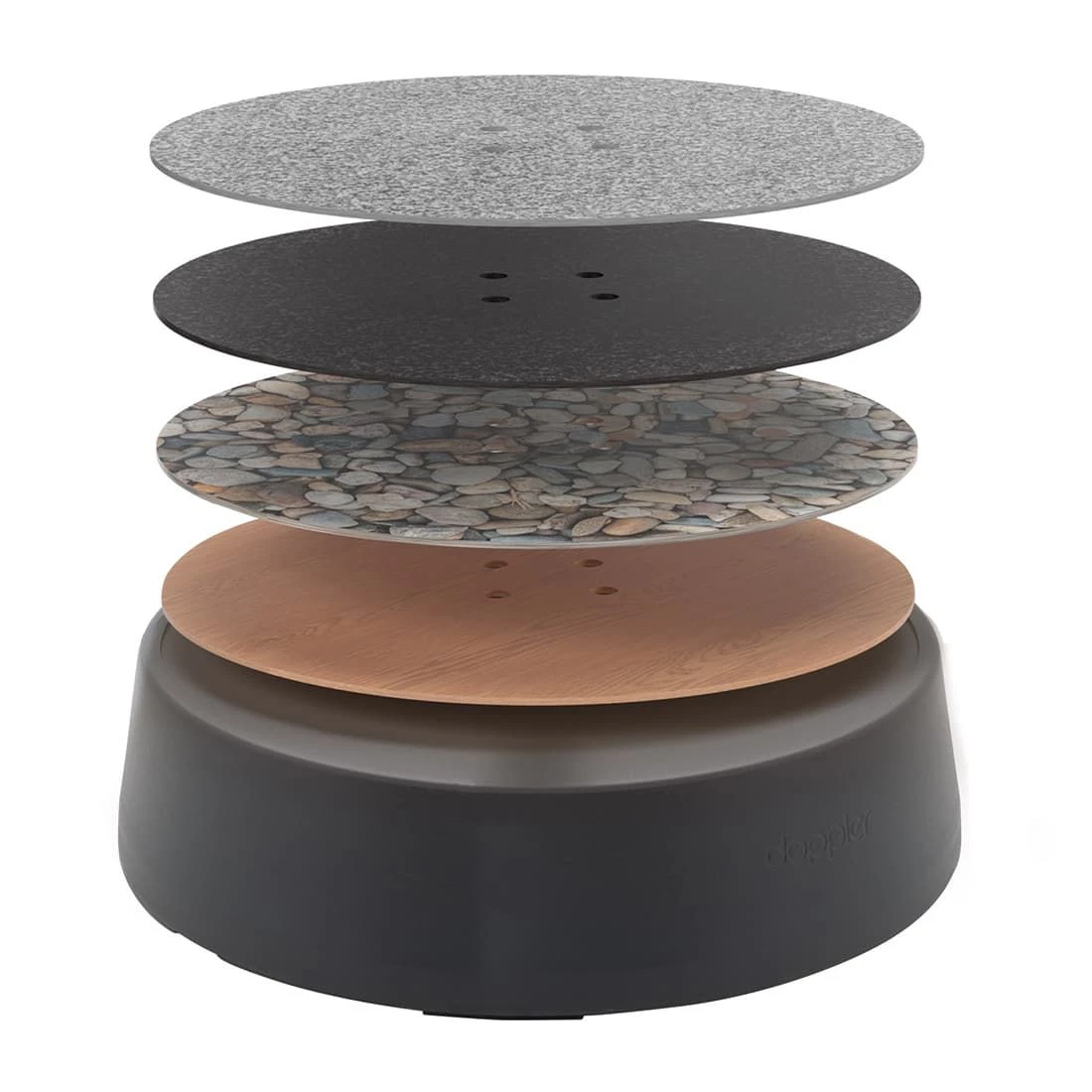 Die Dekorplatte (ca. 5kg) fĂŒr den Rollsockel Expert Easy-Move wird zwischen StĂ€nder und Standrohr gelegt/montiert. Es stehen 4 Dessins zur Auswahl.