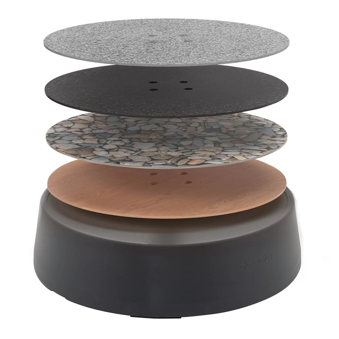 Die Dekorplatte (ca. 5kg) fĂŒr den Rollsockel Expert Easy-Move wird zwischen StĂ€nder und Standrohr gelegt/montiert. Es stehen 4 Dessins zur Auswahl.