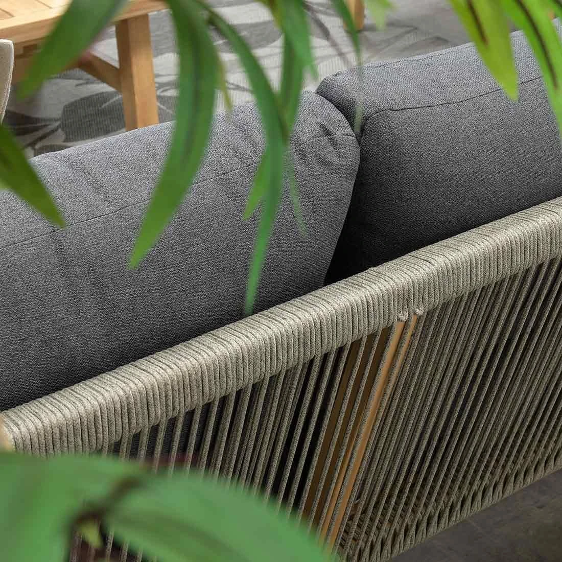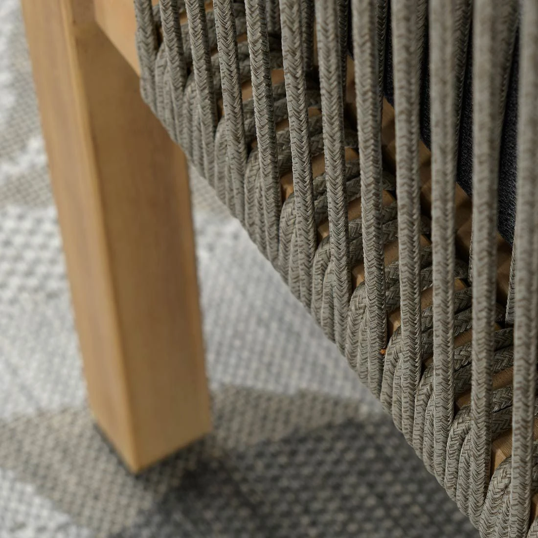 Das Gestell und die Tischplatte bestehen aus Akazienholz. Damit das Loungeset optisch ansprechend ist, sind das Gestell und die Tischplatte im Farbton Akazie White Wash gehalten. Das Gestell ist mit Rope umflochten und bringt somit modernes Flair auf Ihre Terrasse. Farblich ist der Korpus des Loungesets in ansprechendem Mittelgrau gehalten. Der Bezug des Loungesets ist aus Polyester gefertigt. Auch wenn der Bezugsstoff Wind und Wetter trotzen kann, empfehlen wir, abnehmbare Kissen bei länger andauernder Feuchtigkeit und im Winter drinnen zu lagern. Die Farbe des Bezugs ist Anthrazit.
