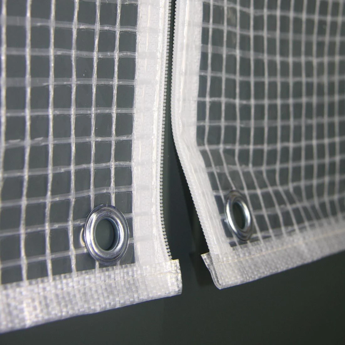 Das Material setzt sich aus einem Verbund von zwei Folien und einem eingeschlossenen Gittergelege zusammen.
