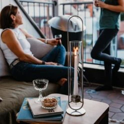Das silberfarbene Windlicht zum Aufstellen oder Aufhängen schafft eine gemütliche Atmosphäre. Durch die ovale Form wirkt der Kerzenhalter elegant und funktional zugleich. Durch die Verwendung von robustem Edelstahl und Borosilikatglas ist das Windlicht sowohl für den Außen- als auch für den Innenbereich geeignet. Der Deckel mit Silikongriff verhindert in halb geöffnetem Zustand ein Erhitzen des Bügels, ganz geschlossen wird die Kerze gelöscht. Zum Lieferumfang gehören ein Edelstahlhalter und eine hitzebeständige Aramidkordel. So können Sie das Windlicht je nach Bedarf auf der Terrasse aufhängen oder im Garten auf den Tisch stellen.