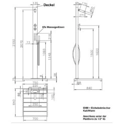 - Kalt- und Warmwasseranschluss über Flexschläuche unter der Plattform mit 2 x ½“ Innengewinde