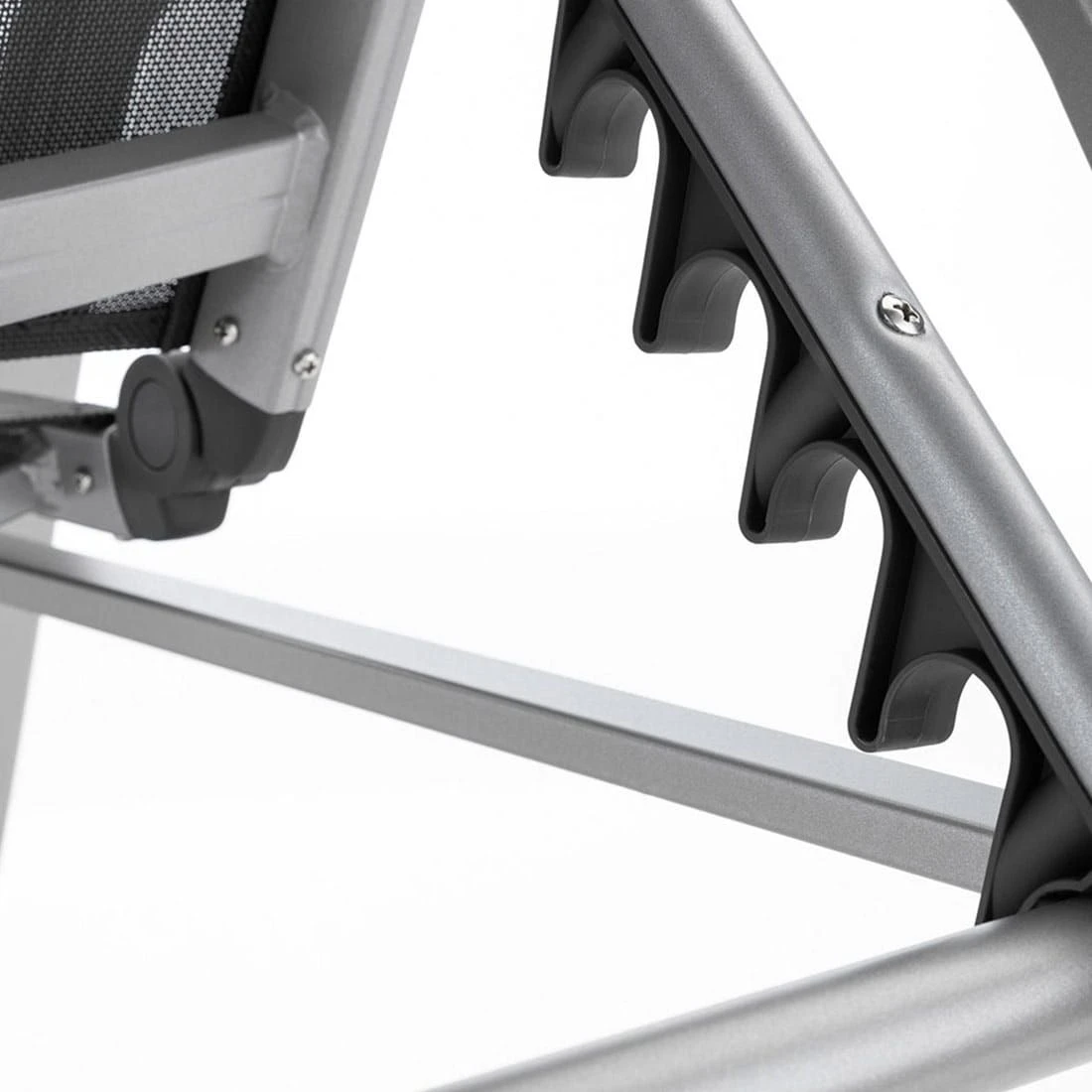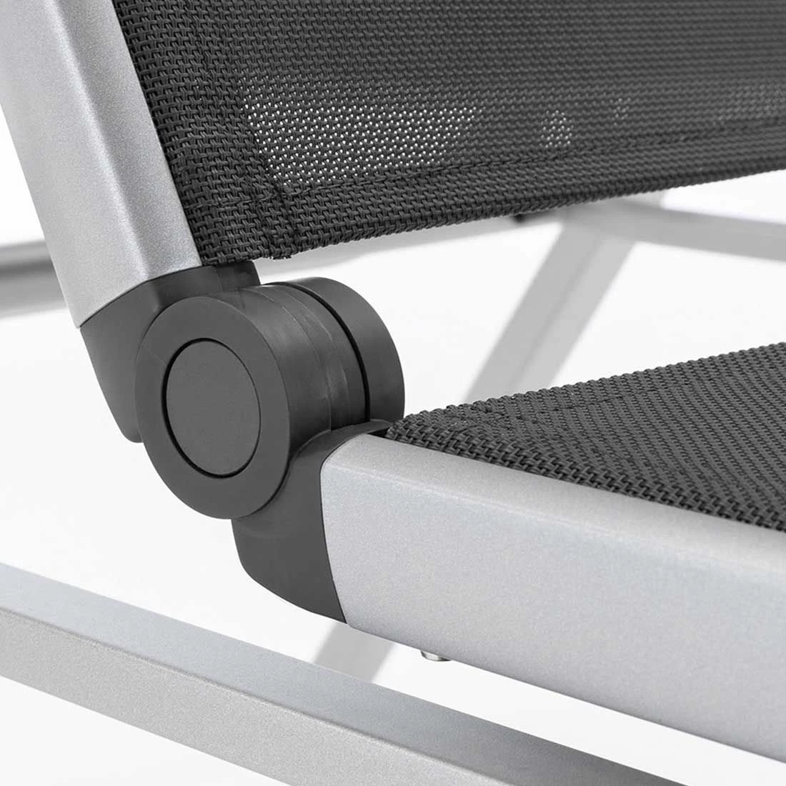 Für die Herstellung des Gestells wird hochwertiges und wetterfestes Aluminium verwendet. Für eine attraktive Optik ist das Gestell im Farbton Silber gehalten. Die Sitzfläche wird mit Textilene bespannt. Dieses Material ist reiß- und wetterfest und zeichnet sich durch eine hohe Beständigkeit gegenüber Hitze und Frost aus. Darüber hinaus ist Textilene leicht zu säubern. Damit die Gartenliege optisch ansprechend ist, sind die Sitzfläche und der Bezug im Farbton Anthrazit gehalten.