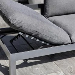 Die Loungebank ist individuell verstellbar. Diese Funktion ermöglicht Ihnen daher immer die ideale Position – ganz gleich, ob Sie essen, lesen oder einfach entspannen möchten.