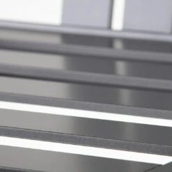 Das Gestell ist aus Aluminium hergestellt. Optisch begeistert das Gestell in der Farbe Anthrazit. Für die Sitz- bzw. Rückenfläche wird Olefin verwendet. Der Marken-Outdoorstoff überzeugt mit einer hohen Witterungsbeständigkeit. Denn sowohl Sonne als auch Regen können dem robusten Outdoor-Stoff kaum etwas anhaben. Als Material für die Tischplatte wird das besonders hochwertige Hartholz Teak verwendet. Die Maserung des Holzes und der angenehme Farbton integrieren sich sehr gut in jegliche Arten der Garten- und Balkongestaltung und verströmen eine einzigartig natürliche Atmosphäre. Die Tischplatte ist Natur.