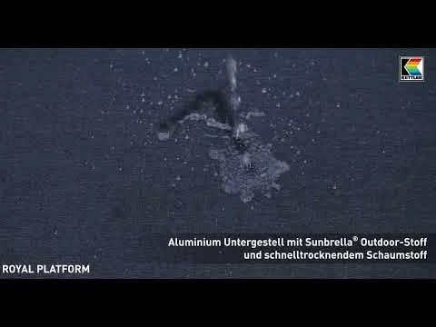 Das Gestell ist aus Aluminium gefertigt. Optisch begeistert das Gestell in der Farbe Anthrazit. Die hohe Witterungsbeständigkeit erfährt das Möbelstück auch durch die hochwertigen Bezüge aus dem Markenstoff Sunbrella. Dieser ist u.a. wasser- und schmutzabweisend, UV-beständig und schimmelresistent – ideale Voraussetzungen für eine gepolsterte Lounge im Freien!