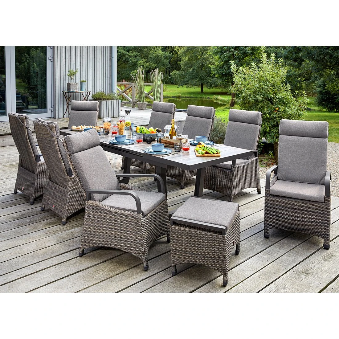 Des Weiteren begeistert das Set mit einer Ausziehfunktion am Tisch, sodass er sich bei Bedarf bequem vergröĂern lĂ€sst. Die RĂŒckenlehnen des Gartenmöbel-Sets können Sie ganz bequem stufenlos verstellen.