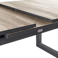 Die robusten Metallgestelle aus Aluminium sind pflegeleicht und garantieren gleichzeitig eine hohe StabilitĂ€t. DarĂŒber hinaus gewĂ€hrleistet dieses leichte Material, dass Sie die Möbel bequem transportieren können. Optisch ansprechend ist die Farbgebung der Gestelle in Anthrazit. Um das robuste Gestell wird ein hochwertiges Geflecht aus Polyrattan geflochten. Farblich begeistern die BezĂŒge in elegantem Grau. FĂŒr die Platte des im Set enthaltenen Tisches wird das Naturmaterial Keramik ausgesucht. Keramikplatten sind stoĂ-, schlag- und schnittbestĂ€ndig und zĂ€hlen somit zu den stabilsten Tischplatten auf dem Gartentisch-Markt. Der Tisch ist klassisch rechteckig gestaltet. Als klassische Design-Komponente fungiert das geradlinige VierfuĂgestell. Farblich ist das Gestell in Anthrazit gehalten, die Tischplatte ĂŒberzeugt in der Farbe Braun.