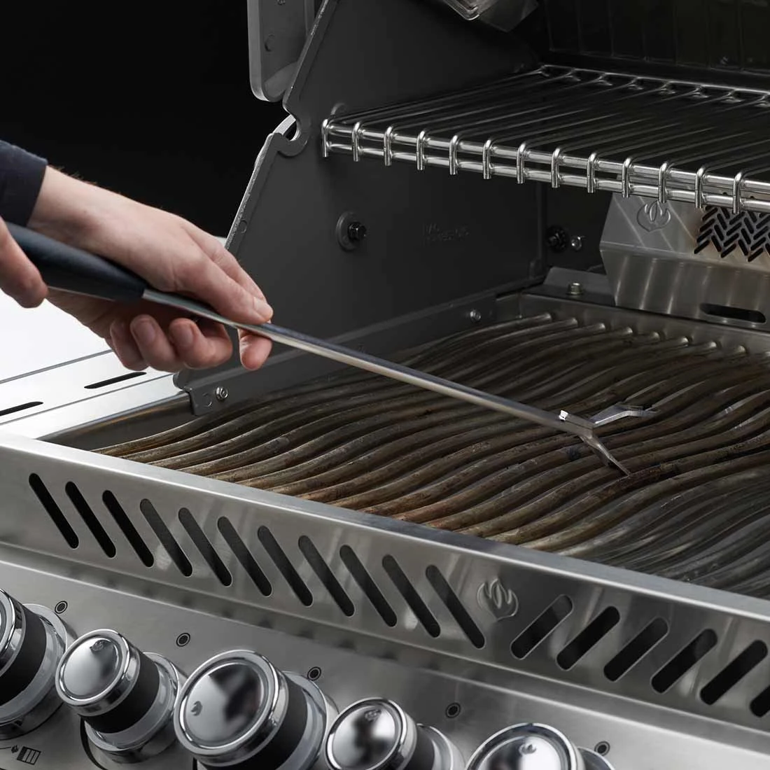 Napoleon® Edelstahl Grillrost-Schaber. Ideal für das Abschaben von eingebrannten Rückständen. Für 9,5 mm und 7 mm dicke Roststäbe und auch für Warmhalteroste geeignet.