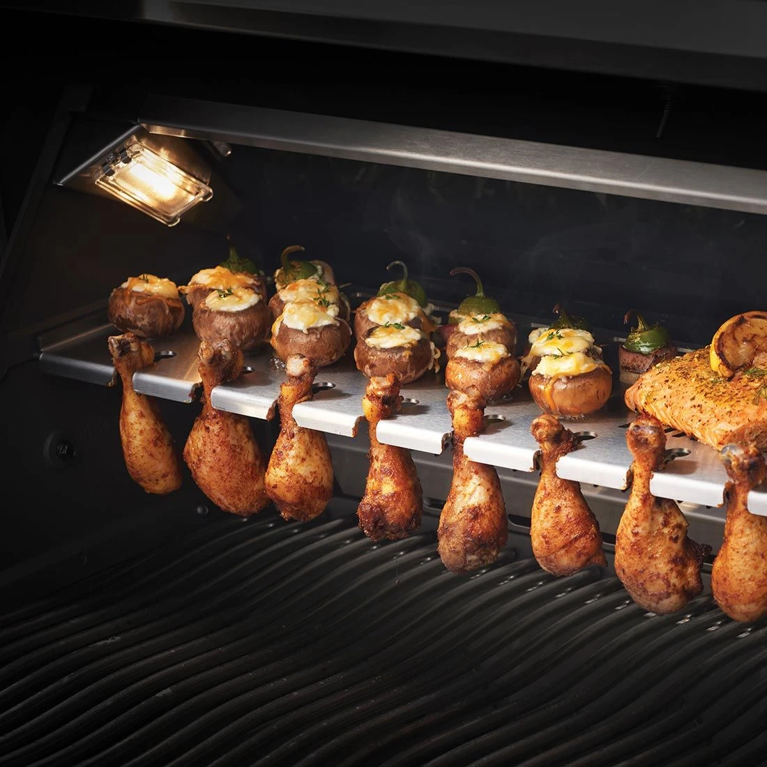 Der im kanadischen Werk konstruierte und hergestellte Grillrost aus hochwertigem, schweren Edelstahl ersetzt die Warmhalteroste der Prestige-Modelle. Das durchdachte Design fördert die Kreativität des Grillers und eignet sich perfekt für Vorspeisen, Meeresfrüchte und Brot. Zudem bietet er sich als Halter für Hähnchenschenkel an.