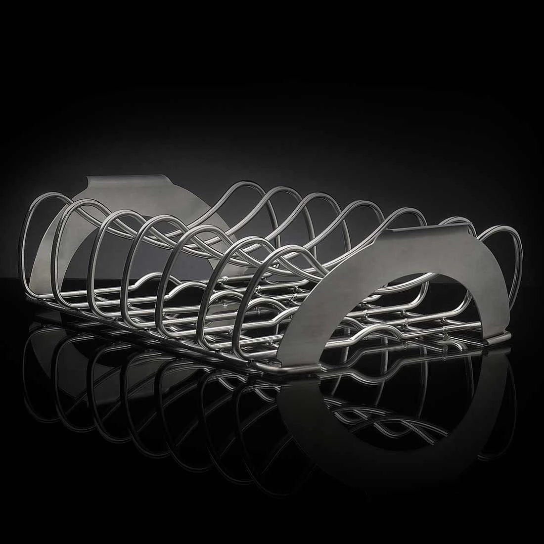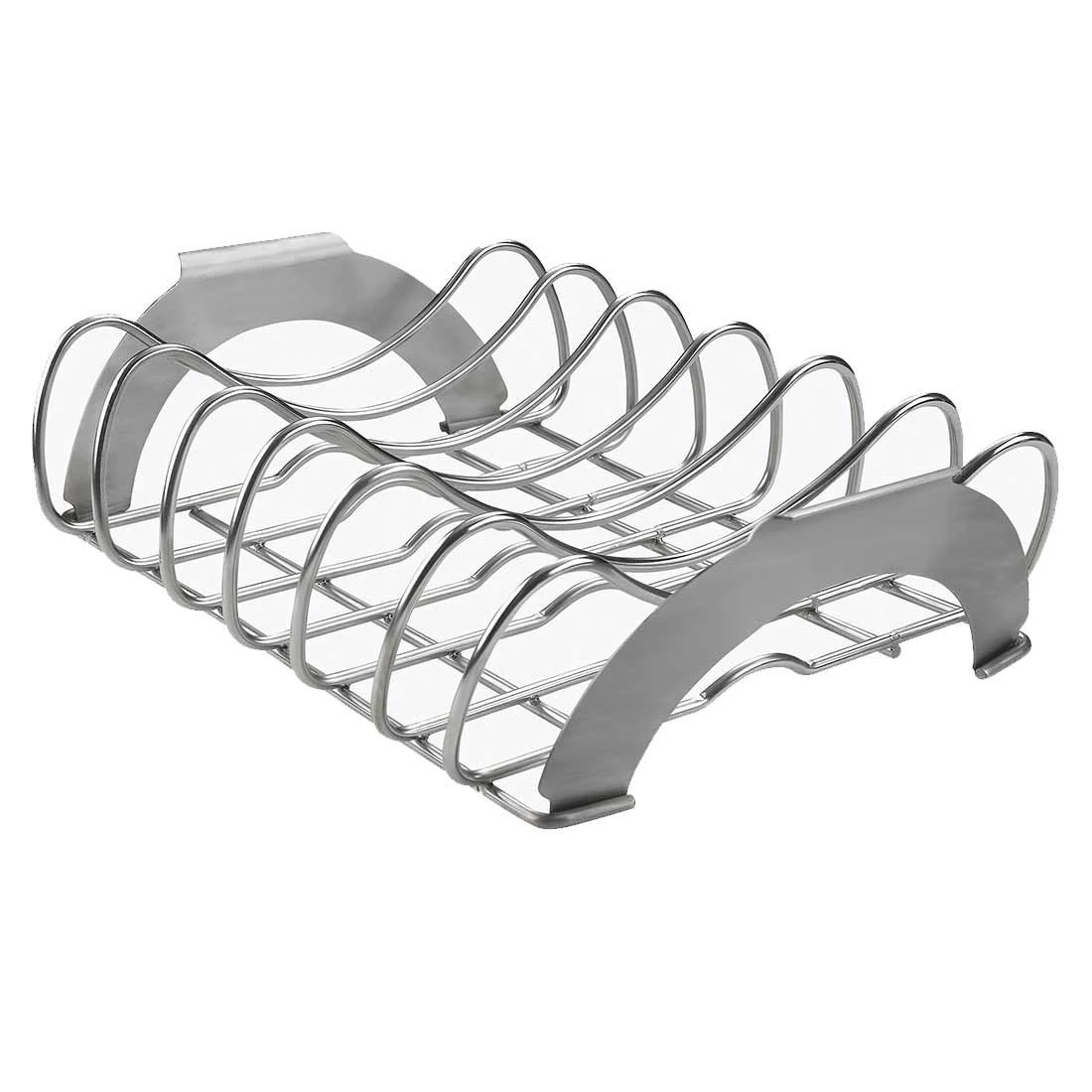 Napoleon® PRO Spare-Ribs- und Bratenhalter mit seitlichen Griffen und massiven Edelstahl-Spangen.