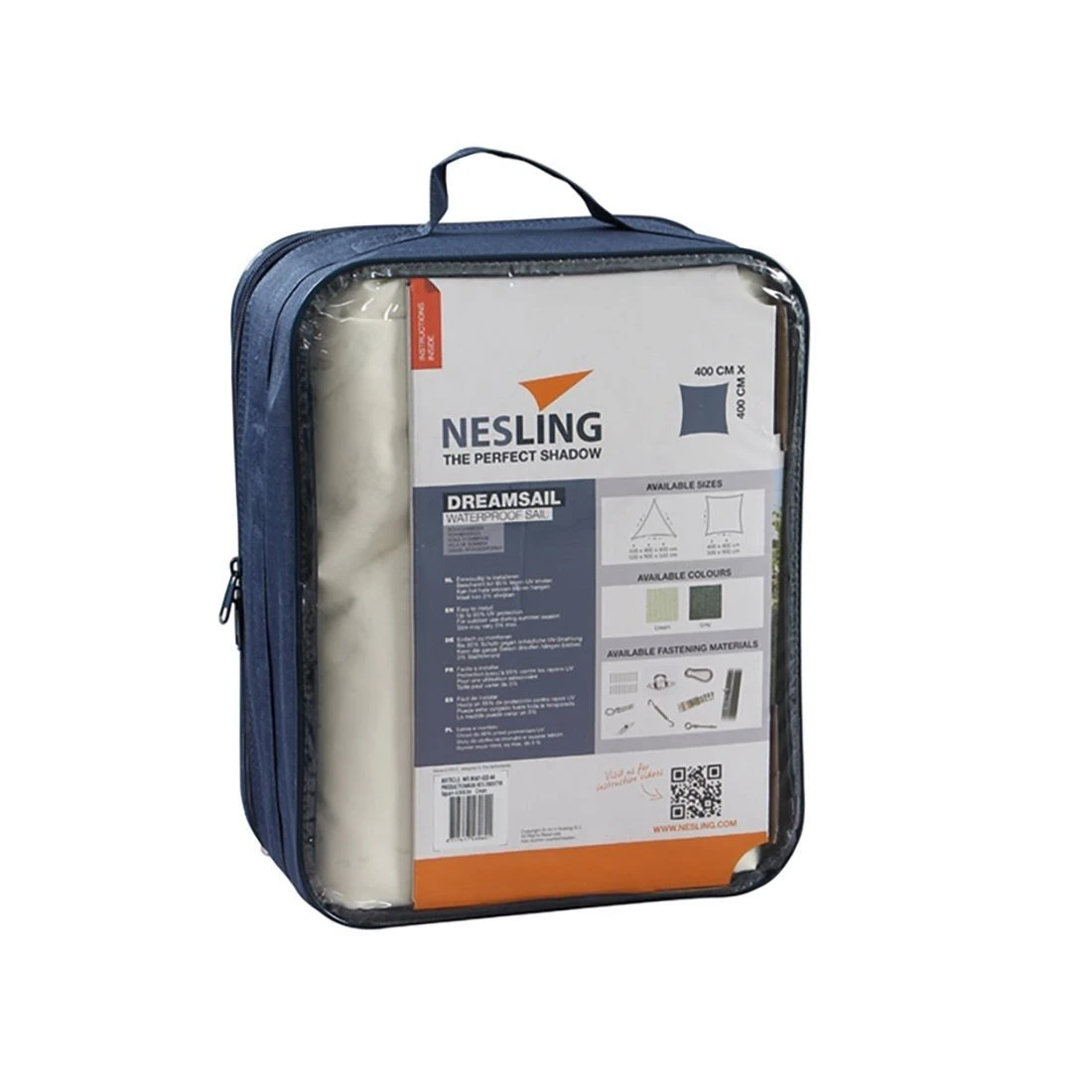 Das Sonnensegel benötigt während der Sommersaison und auch bei Wind keinen besonderen Schutz. Das Gewebe ist leicht zu reinigen. Während der Wintermonate empfehlen wir eine Demontage und Einlagerung an einem geschützten Ort. Nesling bietet eine 3-jährige Garantie auf das Polyester-Tuch.