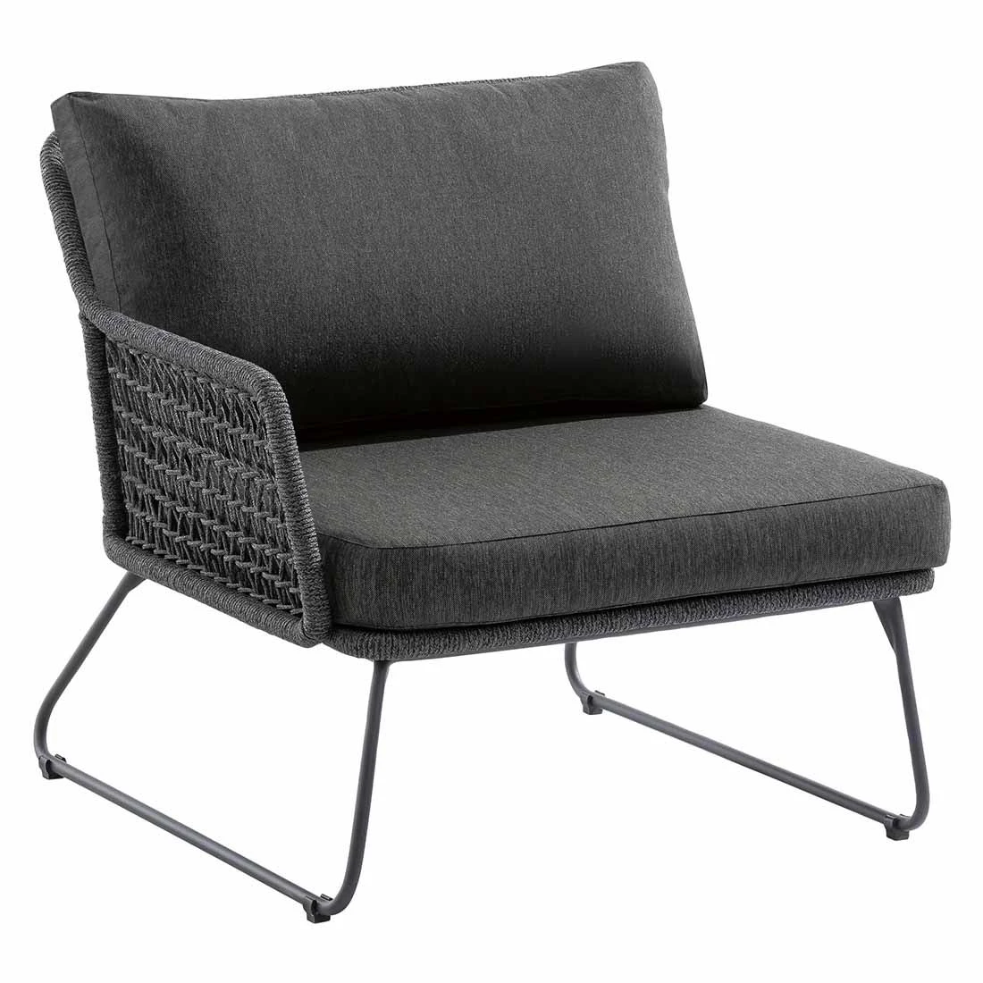 Für die Sitzfläche und den Bezug kommt Olefin zum Einsatz. Damit das Eck-/Endmodul optisch ansprechend ist, sind das Gestell, die Sitzfläche und der Bezug im Farbton Anthrazit gehalten. Das Gestell ist aus Aluminium hergestellt. Hochwertiges Rope umgibt das robuste Gestell und verleiht dem Eck-/Endmodul damit einen ganz besonderen Look. Der Korpus ist farblich in geschmackvollem Grau gestaltet.