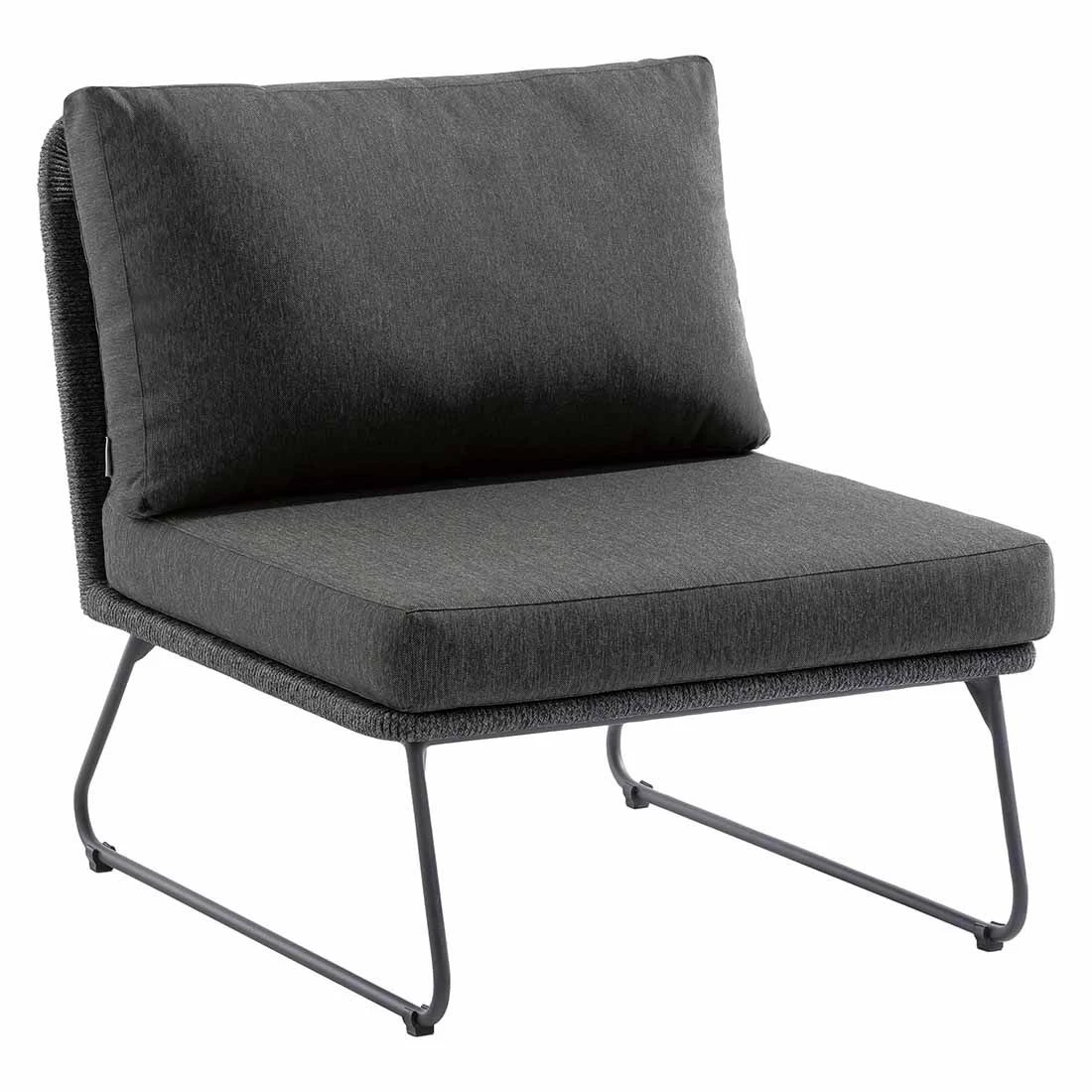Das Gestell wird aus Aluminium in der Farbe Anthrazit gefertigt. Das Gestell ist mit Rope umflochten und bringt somit ein gemütliches Flair auf Ihre Terrasse. Für die Bezüge wird Olefin verwendet. Der Marken-Outdoorstoff in der Farbe Anthrazit überzeugt mit einer hohen Witterungsbeständigkeit. Denn sowohl Sonne als auch Regen können dem robusten Outdoor-Stoff kaum etwas anhaben.