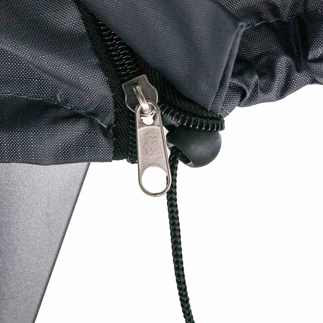 Ein Reißverschluss sorgt für ein bequemes Anbringen der Hülle, für die anschließende Fixierung ist ein Zugband eingearbeitet.