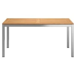 Als Material fĂŒr die Tischplatte wurde das hochwertige Hartholz Teak gewĂ€hlt. Die Maserung des Holzes und der warme Farbton integrieren sich sehr schön in das Gesamtbild eines jeden Gartens und sorgen fĂŒr eine einzigartig natĂŒrliche AtmosphĂ€re.
