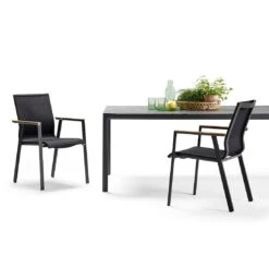 Für die Herstellung des Gestells wird hochwertiges und wetterfestes Aluminium verwendet. Für eine attraktive Optik ist das Gestell im Farbton Anthrazit gehalten. Ein weiteres Highlight des Stapelsessels ist die Bespannung mit Textilene. Dieser Bezugsstoff überzeugt durch eine hohe Robustheit gegenüber Hitze und Frost und ist leicht zu reinigen. Die Sitzfläche hat eine attraktive Farbgebung in Coal.