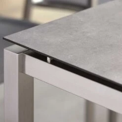 Das Gestell besteht aus pflegeleichtem und rostfreiem Edelstahl. Das klassische Vierfuß-Gestell garantiert Ihnen maximale Beinfreiheit. Mit der rechteckigen Form lässt sich das Tischgestell platzsparend in Ecken oder an Häuserwänden aufstellen.