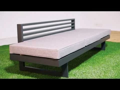 Als Material des Gestells hat der Hersteller wertiges Aluminium gewählt. Optisch begeistert das Gestell in der Farbe Anthrazit. Die Sitzfläche ist angenehm gepolstert. Der Bezug des Gartensofas ist aus Polyester gefertigt. Für eine längere Haltbarkeit empfehlen wir bei stärkerem oder lang anhaltendem Regen, die abnehmbaren Kissen im Innenraum zu lagern. Die Farbe des Bezugs ist Grau-Meliert.