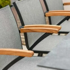 Die robusten Metallgestelle aus Aluminium sind pflegeleicht und garantieren gleichzeitig eine hohe StabilitĂ€t. DarĂŒber hinaus gewĂ€hrleistet dieses leichte Material, dass Sie die Möbel bequem transportieren können. Ein weiteres Highlight der Sitzmöbel ist die Bespannung der SitzflĂ€chen mit Textilene in der Farbe Leinen Grau. Dieses Material zeichnet sich durch eine hohe Robustheit gegenĂŒber Hitze und Frost aus und ist leicht zu reinigen.