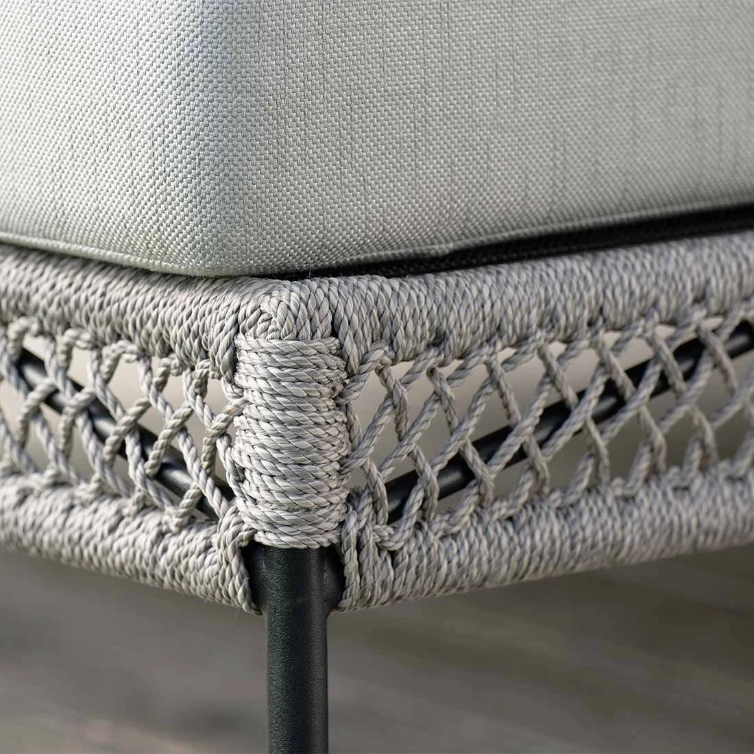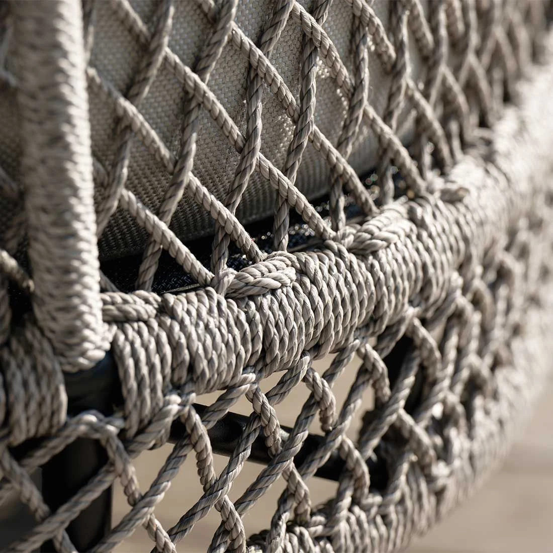 FĂŒr die Herstellung des Gestells wird hochwertiges und wetterfestes Aluminium verwendet. Farblich ist es in attraktivem Schwarz Matt gehalten. Hochwertiges Rope umgibt das robuste Gestell und verleiht dem Daybed damit einen ganz besonderen Look.