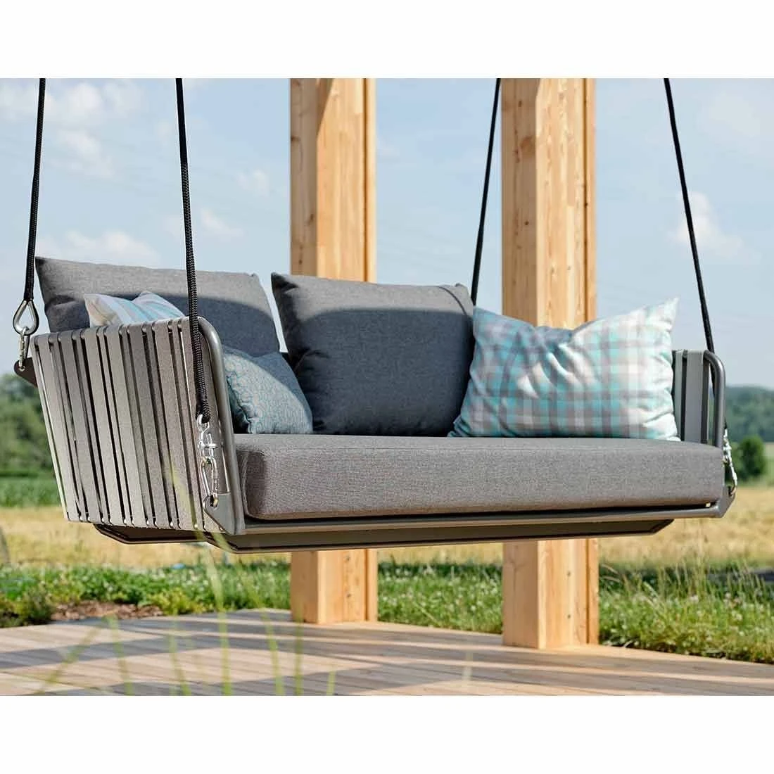 Das Gestell besteht aus pflegeleichtem und wetterfestem Aluminium. FĂŒr eine attraktive Optik ist das Gestell im Farbton Anthrazit gehalten. Hochwertiges Rope umgibt das robuste Gestell und verleiht dem HĂ€ngesessel damit einen ganz besonderen Look. Die SitzflĂ€che verfĂŒgt ĂŒber eine angenehme Polsterung. Der Bezug des HĂ€ngesessels ist aus Polyacryl gefertigt. Dieses Material begeistert mit einer hohen WitterungsbestĂ€ndigkeit. Regen kann dem robusten Outdoor-Stoff kaum etwas anhaben. Damit der HĂ€ngesessel optisch ansprechend ist, sind die SitzflĂ€che und der Bezug im Farbton Seidengrau gehalten.