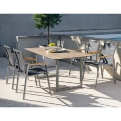 Für die Sitzfläche und den Bezug kommt Textilene zum Einsatz. Das Gestell besteht aus pflegeleichtem und wetterfestem Aluminium. Für eine attraktive Optik ist das Gestell im Farbton Graphit gehalten. Die Sitzfläche ist in ansprechendem Silbergrau gehalten.