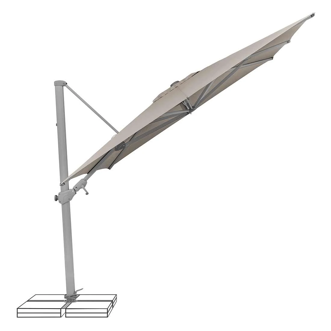 Lassen Sie sich vom Suncomfort Varioflex Ampelschirm begeistern und schützen Sie sich und Ihre Liebsten vor der Mittagssonne. Der Ampelschirm in der Farbe Off-Grey überzeugt zudem mit einer stattlichen Größe von 300×300 cm.