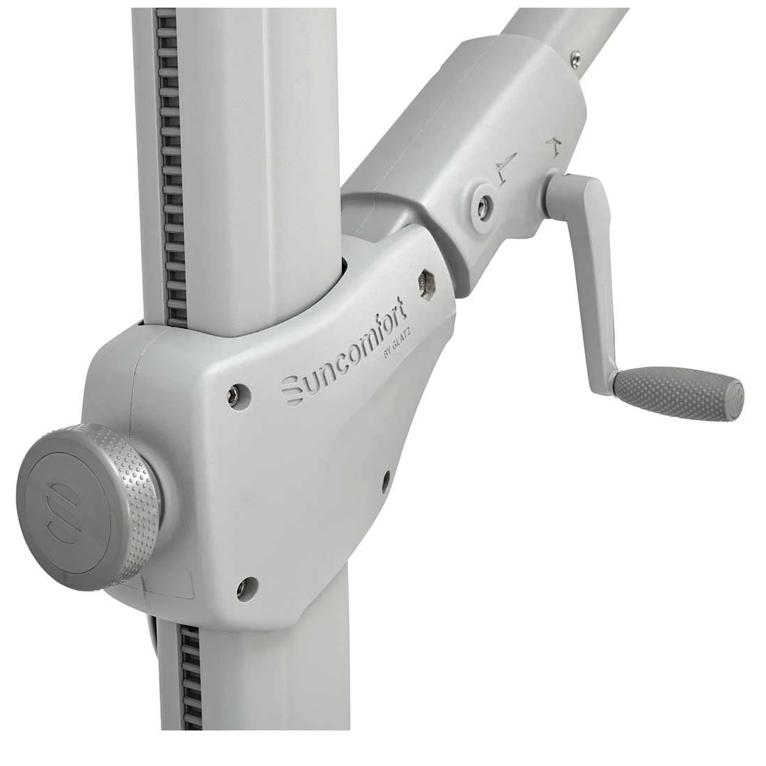 Der Varioflex (Baureihe ab 2022) ist einfach handzuhaben: Mittels einer Kurbel kann das Schirmdach nach links und rechts stufenlos geneigt werden. Durch einen Schieber, der nach unten gezogen wird, kann das Schirmdach zusätzlich in Schrägstellung gebracht werden und mit einem Drehknopf fixiert werden. Darüber hinaus verfügt dieser Freiarmschirm über einen Drehfuß, mit welchem sich die Position des Schirmdachs um 360° mühelos verändern lässt.