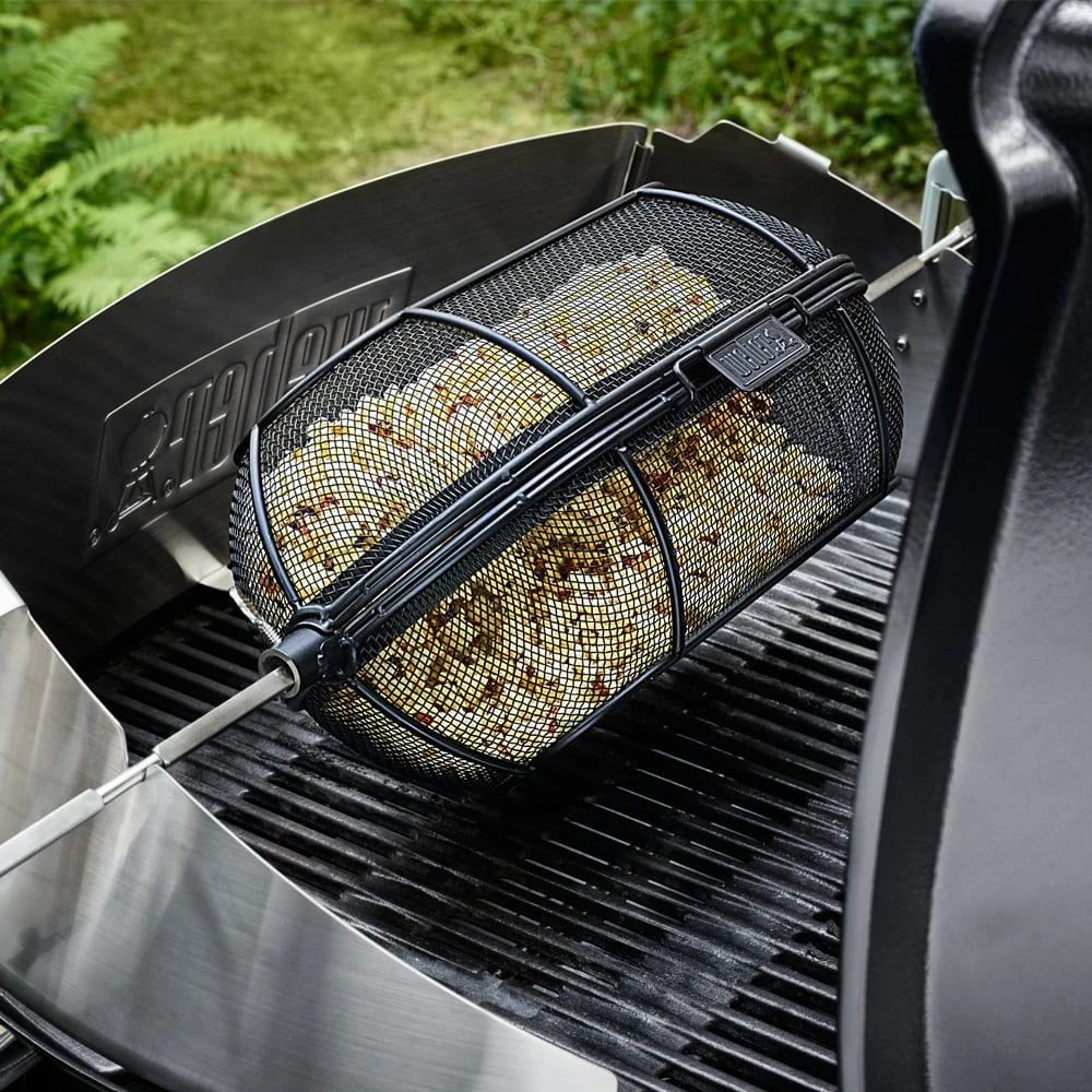 Der feinmaschige Drehkorb ist ausgesprochen praktisch und eröffnet ganz neue Möglichkeiten, um kleinere Gerichte am Drehspieß zuzubereiten. Ob feines Gemüse, knusprige Pommes oder selbst Popcorn, mit diesem Drehkorb gelingt Ihnen nun alles spielend, da das regelmäßige Überprüfen und Wenden des Grillguts entfällt.