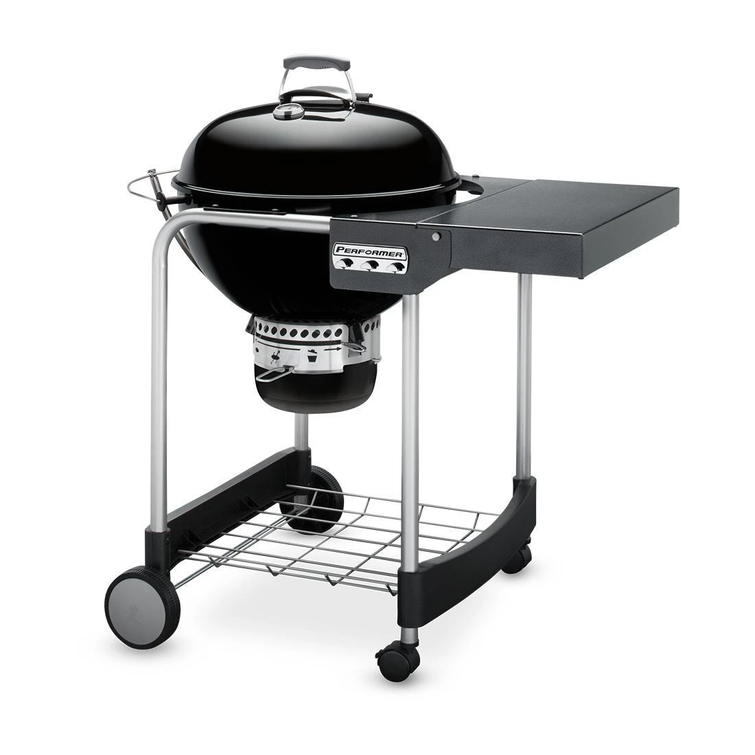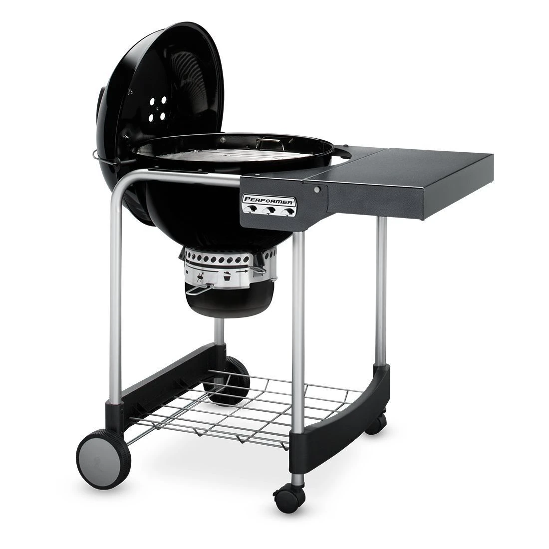 Das klassische Grillvergnügen mit praktischen Erweiterungen: Dem Weber Performer GBS Kohlegrill sind dank dem Rollwagen mit abklappbarem Seitentisch und Bodengitter, sowie dem integrierten Deckelthermometer in seiner Vielseitigkeit keine Grenzen gesetzt.