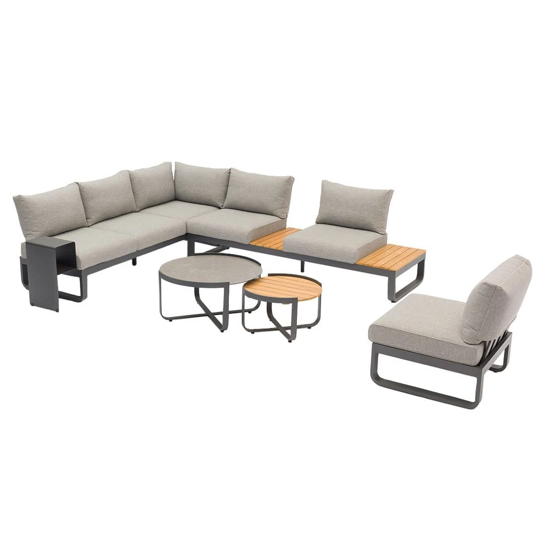 Der Beistelltisch ist komplett aus Aluminium gefertigt und gibt so ein charmantes, einheitliches Bild auf der Terrasse ab. Farblich ist die Platte in Graphit gehalten. Die rechteckige Form ermöglicht es Ihnen, den Beistelltisch in Ecken und an Häuserwänden platzsparend einzusetzen.